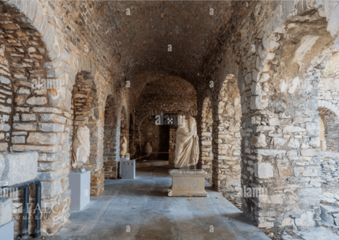 Der kleine Hafen diente vor langer Zeit vor allem den Besuchern der Heiligtümer in den Korykischen Höhlen. In den Höhlen soll der Überlieferung nach eine Quelle mit magischen Kräften (Quelle von Nus) entspringen. In antiker Zeit befanden sich im Hafen das Römische Bad des Pomenios, ein Freund von Kaiser Arcadius und Honorius. Von den Bädern "Der Drei Grazien"