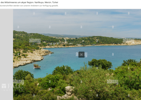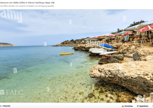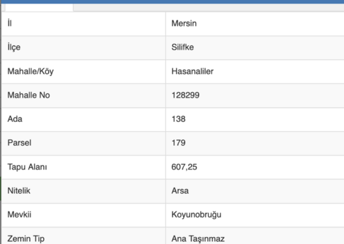 Das Grundstück mit einer Größe von 607m2 ist voll erschlossen und bietet eine atemberaubende Aussicht. Es befindet sich in Narlikuyu einem beliebten Ziel für Touristen, mit Blick auf die im azurblauen Wasser ruhende "Mädchenburg".