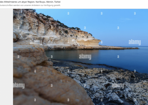 Das bei türkischen Touristen beliebte Kizkalesi, mit dem Blick auf die im azurblauen Wasser ruhende »Mädchenburg«, ist schnell erreicht. Moderat quirliges Strandleben herrscht, doch eine Bucht weiter westlich führt es in eine stille Bucht. Das Süßwasser des unterirdischen Flusses des Himmels fließt hier bei Narlikuyu ins östliche Mittelmeer und sammelt sich als glasklare Flüssigkeit auf der salzigen Oberfläche. »Was heißt Narlikuyu auf Deutsch?« Die Antwort »Der Garten Eden.«
