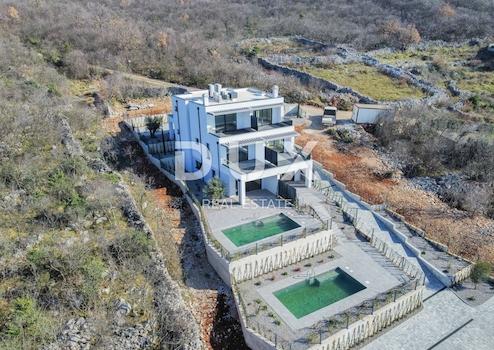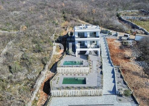 RIJEKA, KOSTRENA – eine exklusive Villa mit Pool und Garage und Panoramablick auf das Meer