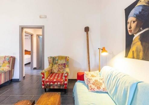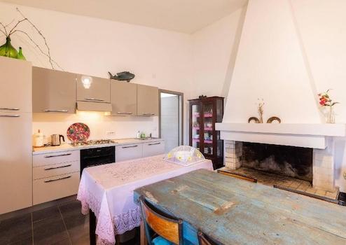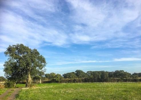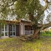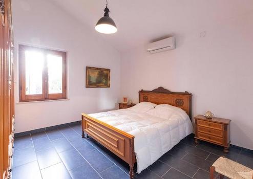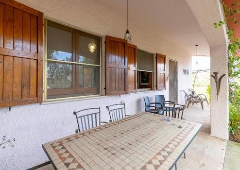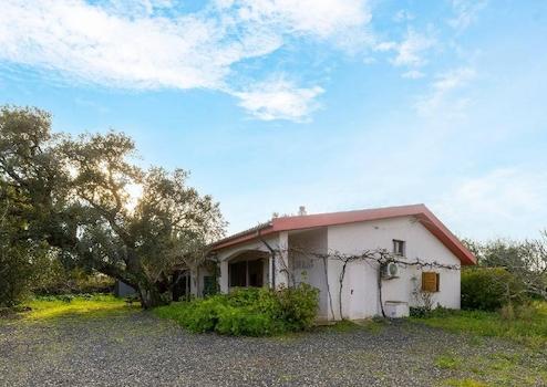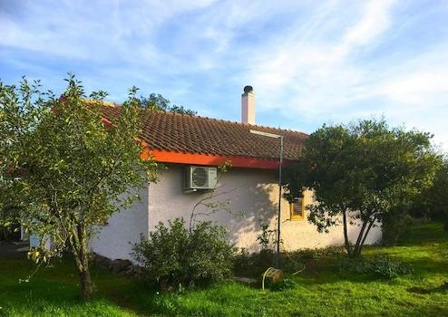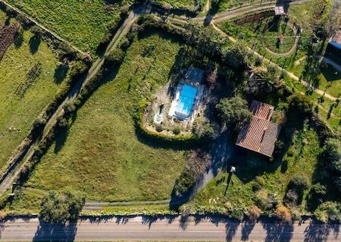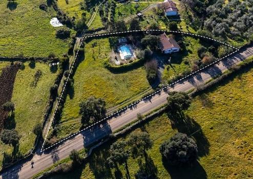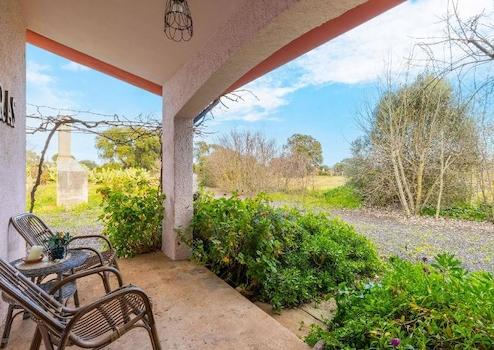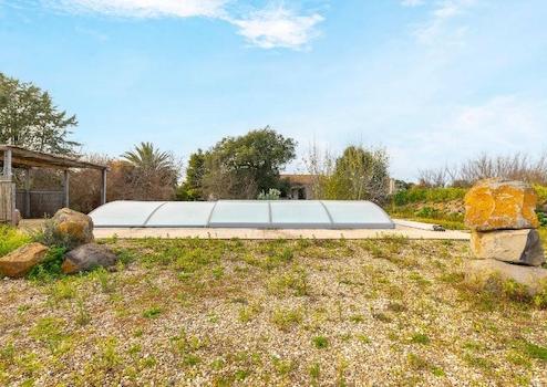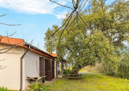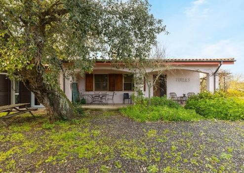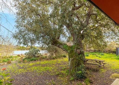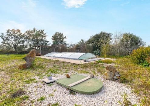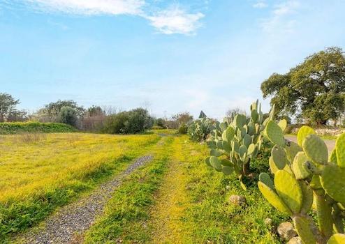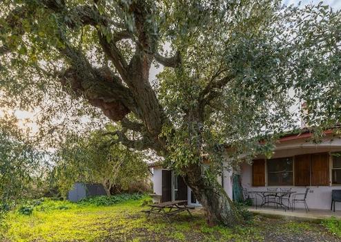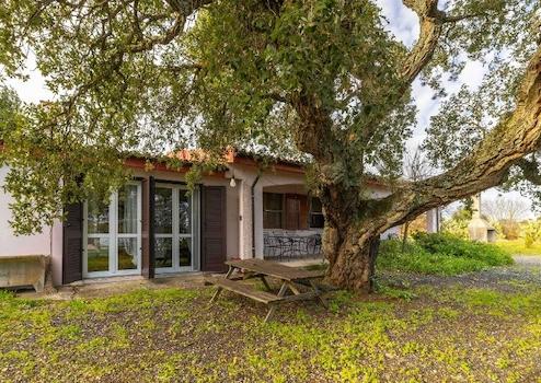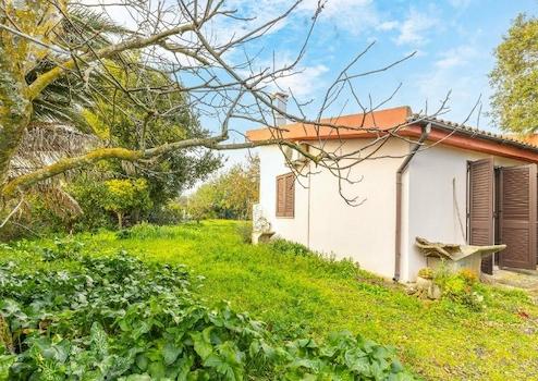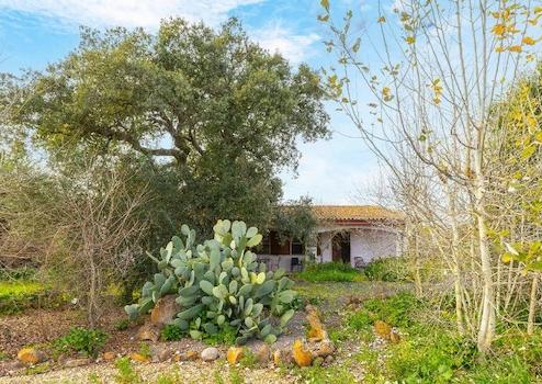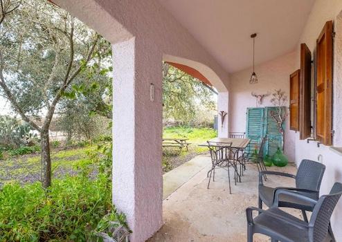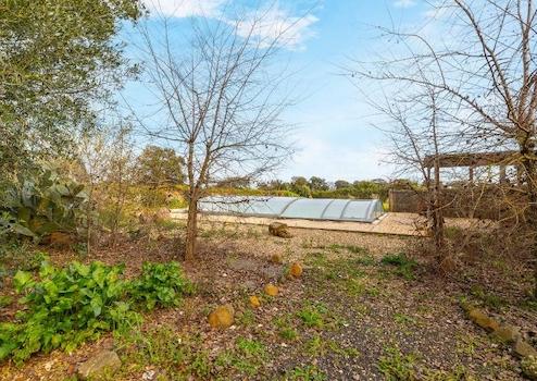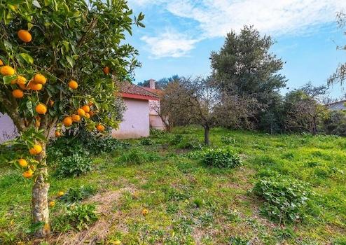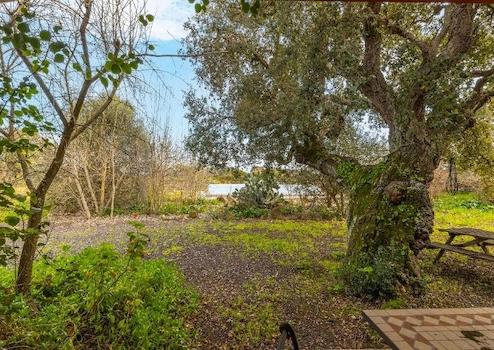 Draußen ist der große private Garten von 6.412 qm ein Naturparadies. Die jahrhundertealten Bäume – Korkeichen, Oliven, Orangen, Mandarinen, Feigen, Walnüsse, Birnen, Mellogaten, Methon und eine üppige Rebe – bieten Schatten und eine authentische Atmosphäre.