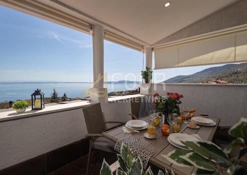 Eine luxuriös ausgestattete Wohnung in Ičići mit atemberaubendem Blick auf die gesamte Kvarner Bucht steht zur Miete.
