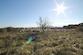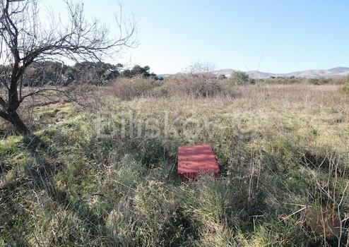 Olivenbäume und niedrige Vegetation auf dem Grundstück.