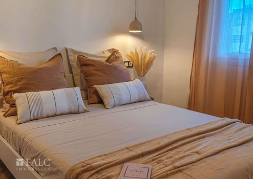 Dieses 86 m² große Apartment, das sich im 3. Stock eines gepflegten Gebäudes befindet, wurde komplett mit hochwertigen Materialien renoviert und verbindet auf elegante Weise mediterrane Ästhetik mit modernem Luxus. Durchdacht gestaltet, bietet es ein einladendes Wohnambiente mit maximalem Komfort und Stil.