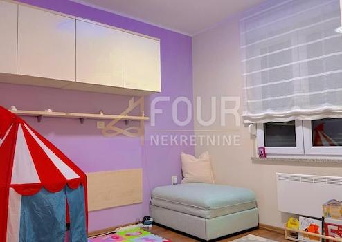 Sie besteht aus Wohnzimmer, Esszimmer und offener Küche, Hauswirtschaftsraum, Flur, zwei Schlafzimmern, Bad und Loggia.