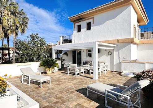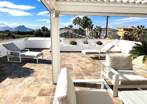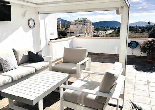 Außergewöhnlich schöne, komplett neu renovierte Penthousewohnung mit 3 Terrassen und Garage nur 500 m zum Meer