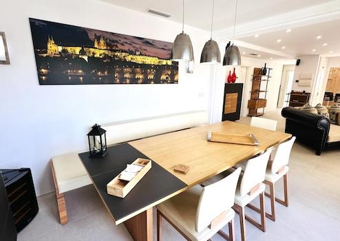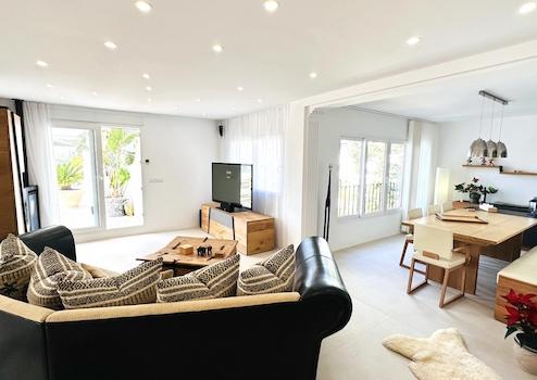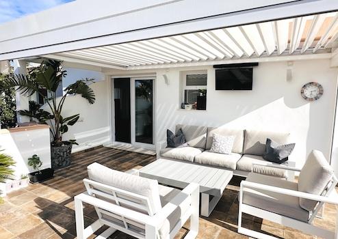 Eine seltene Gelegenheit. Diese komplett neu renovierte Penthousewohnung mit 3 Dachterrassen und Fussbodenheizung wird Sie beeindrucken. Die kurzen Wege zum Meer und zu Restaurants werden Sie begeistern. Die Wohnung wurde ein Jahr lang von Grund auf renoviert und lässt keine Wünsche offen. Besonders hervorzuheben sind die zahlreichen Extras wie z.B. Fussbodenheizung mit Wärmepumpe, Entkalkungsanlage, Klimaanlagen, Isolierglasfenster, teilweise elektrische Rollläden, Alarmanlage, Nolte Einbauküche, 2 elektrische Markisen, elektrische Bioklima Beschattung mit Licht, Solardusche außen, Musikanlage, Treppenlift / Lastenaufzug elektrisch nur für diese Wohnung, Glasfaser Anschluss, Glastüre im Eingangsbereich, Sprechanlage mit Bildschirm, großer Gemeinschaftspool, Garage mit Strom und Licht, Stellplatz vor der Garage, komplett neue Strom und Wasserleitungen, Pelletofen, u.v.a.m. Die Wohnung wird ohne Möbel verkauft.