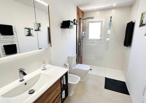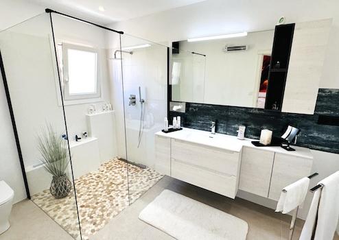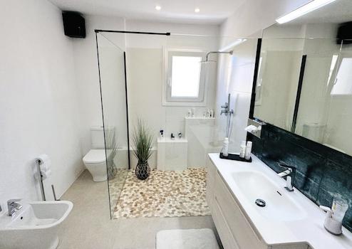 Fussbodenheizung mit Wärmepumpe, Entkalkungsanlage, Klimaanlagen, Isolierglasfenster, teilweise elektrische Rollläden, Alarmanlage, Nolte Einbauküche, 2 elektrische Markisen, elektrische Bioklima Beschattung mit Licht, Solardusche außen, Musikanlage, Treppenlift elektrisch nur für diese Wohnung, Glasfaser Anschluss, Glastüre im Eingangsbereich, Sprechanlage mit Bildschirm, großer Gemeinschaftspool, Garage mit Strom und Licht, Stellplatz vor der Garage, komplett neue Strom und Wasserleitungen, Pelletofen, u.v.a.m.