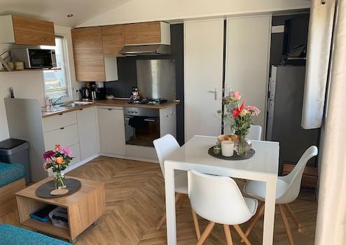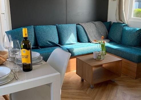 Modernes Chalet (Baujahr November 2021) auf dem Campingplatz „De Bongerd“ mit 2 Schlafzimmern, 1 Badezimmer und einer großzügigen Veranda. Nur 10 Minuten mit dem Fahrrad zum Strand und 5 Minuten zu Fuß zu den Geschäften. Ausgestattet mit einer luxuriösen Küche, einem Parkplatz und Campingplatz-Einrichtungen wie einem Schwimmbad. Sofort bezugsfertig!