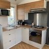 Angenehme Küche, ausgestattet mit großem Kühlschrank + Gefrierfach, Backofen, Mikrowelle, Wasserkocher und Kaffeemaschine. Gekocht wird mit Gas. Inventar wird mitgeliefert.