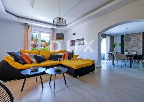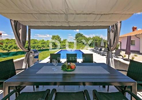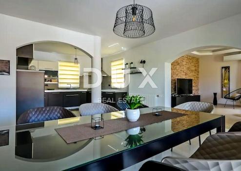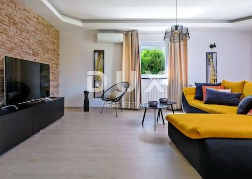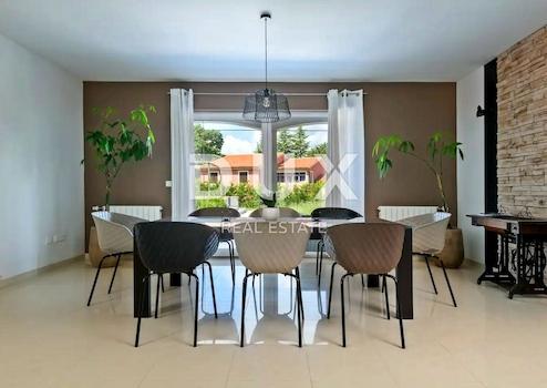 An der südöstlichen Küste Istriens, wo grüne Hügel auf das Meer treffen, wo Natur und Erbe aufeinander treffen, gibt es zwei Städte gleicher Größe mit unterschiedlichen, sich aber gegenseitig ergänzenden Charakteren – Labin und Rabac. Die malerische Stadt Labin erhebt sich auf einem 320 Meter hohen Hügel, nur vier Kilometer von den weißen Kiesstränden in Rabac entfernt. Labin, das für kurze Zeit zur unabhängigen Republik erklärt wurde, ist eng mit der reichen Geschichte und dem Bergbau verbunden, die diese Region prägten, und ist heute eine faszinierende Stadt voller Widersprüche. alt und neu, Geschichte und Gegenwart, Tourismus und Kunst. In einem Vorort der Stadt Labin steht ein Haus mit Swimmingpool zum Verkauf. Es liegt in einer sanften Umgebung, weit genug entfernt von Menschenmassen und Lärm und dennoch in der Nähe aller kommerziellen, kulturellen, Bildungs- und Freizeiteinrichtungen. Ein Haus mit zeitlosem Design offenbart die ganze Schönheit schlichter Außenarchitektur. Es handelt sich um ein einstöckiges Haus, das aus einer geschmackvoll eingerichteten und hochwertig ausgestatteten Wohneinheit mit Schwerpunkt auf Komfort besteht. Ein funktionaler, luftiger Wohnraum mit viel Tageslicht und Wärme den ganzen Tag über wird klar definiert und maximal genutzt. Es besteht aus einem Wohnzimmer, einer Küche mit Esszimmer mit Zugang zu einer überdachten Terrasse, drei Schlafzimmern, zwei Badezimmern und einem Raum mit Sauna. Der Grundriss wird durch eine Garage ergänzt. Der Hof ist gärtnerisch angelegt und eingezäunt und verfügt über einen 38 m² großen Swimmingpool mit Sonnendeck und einen von einer Pergola überdachten Loungebereich. Die hervorragende Lage und die räumliche Organisation des Innen- und Außenbereichs dieser Immobilie bieten die Möglichkeit für ein komfortables Familienleben oder eine Investitionsinvestition in ein touristisches Vermietungsunternehmen.