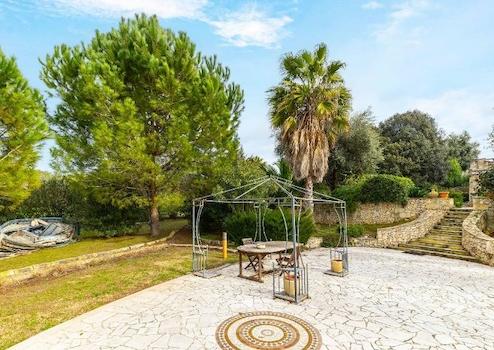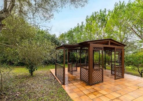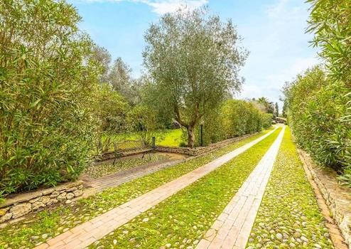 große Terrassen im ersten Stock, die einen Panoramablick auf den Garten und die umliegende Landschaft bieten, ideal für Momente der Entspannung oder um den Sonnenuntergang in absoluter Ruhe zu bewundern.