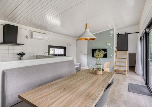 Genießen Sie Ruhe, Platz und Komfort in diesem schönen Ferienhaus, das ideal am Rande eines grünen Ferienparks im attraktiven Brielle liegt. Dieses Haus bietet nicht nur eine ruhige Umgebung, sondern auch eine luxuriöse und moderne Einrichtung, die allen Ihren Bedürfnissen gerecht wird. Was macht diese Wohnung so besonders? Ein helles Wohnzimmer: Die großzügigen Fenster sorgen für viel natürliches Licht und bieten einen schönen Blick auf die grüne Umgebung. Offene Küche: Die moderne, offene Küche ist komplett ausgestattet und mit dem Essbereich verbunden, was das gemeinsame Kochen und Essen besonders gemütlich macht. Gemütliche Essecke: Mit einem bequemen Sofa ist dies der Ort, an dem Sie köstliche Mahlzeiten und lange Gespräche genießen können. Drei Schlafzimmer: Zwei geräumige Schlafzimmer und ein drittes Zimmer mit einem überraschenden Design, das sich perfekt als zusätzliches Schlafzimmer, Hobbyraum oder Spielzimmer eignet. Zwei Badezimmer: Mit zwei stilvollen Badezimmern bietet dieses Haus maximalen Komfort, auch wenn Sie mit mehreren Personen übernachten. Klimaanlage: Immer ein angenehmes Raumklima, egal zu welcher Jahreszeit. Die Lage am Rande des Parks bietet Ihnen zusätzliche Ruhe und Privatsphäre, während Sie gleichzeitig von den Einrichtungen des Ferienparks und der Nähe zum historischen Brielle und dem Brielse-See profitieren können.