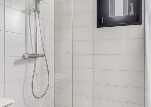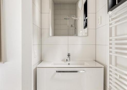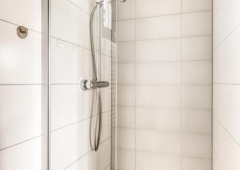 Dieses stilvolle en-suite Badezimmer kombiniert Komfort und Funktionalität. Die begehbare Dusche mit schlankem Design bietet ein erfrischendes Erlebnis und einen modernen Look. Der Spiegel mit eingebauter Beleuchtung sorgt für die perfekte Beleuchtung beim Erfrischen, während das Waschbecken mit Schrank ausreichend Stauraum für alle persönlichen Dinge bietet. Dieses mit viel Liebe zum Detail gestaltete Bad strahlt eine heitere Atmosphäre aus - ideal, um den Tag entspannt zu beginnen oder in Ruhe ausklingen zu lassen.