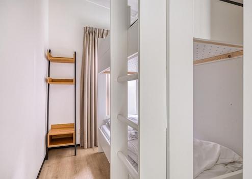 Dieses gemütliche Schlafzimmer ist perfekt für praktische Zwecke eingerichtet. Das Etagenbett bietet eine ideale Schlaflösung für zwei Personen, während der Kleiderschrank kompakten Stauraum bietet. Das kleine Fenster lässt natürliches Licht herein und verleiht dem Raum ein helles und frisches Gefühl. Ein praktischer und gemütlicher Raum, ideal für Kinder oder Untermieter.