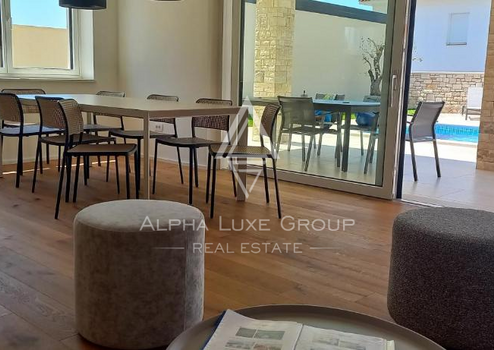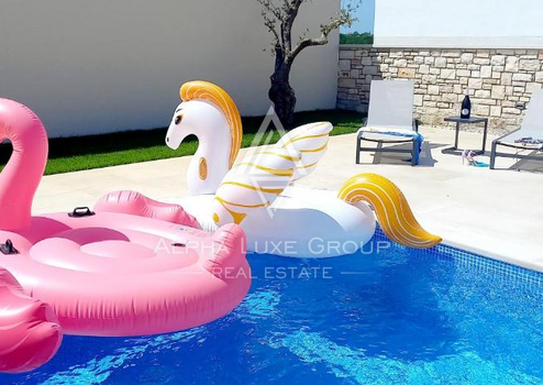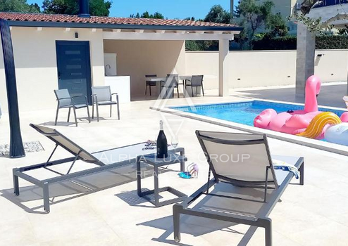 Das Haus ist aus hochwertigen Materialien gebaut und mit einer Klimaanlage sowie einer Wärmepumpe für effizientes Heizen und Kühlen ausgestattet. Der private Garten umfasst einen Pool, eine Sonnenterrasse, eine Sommerküche und eine gepflegte Grünfläche. Darüber hinaus stehen zwei Parkplätze zur Verfügung.