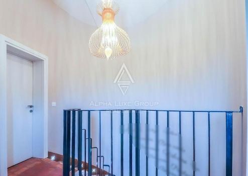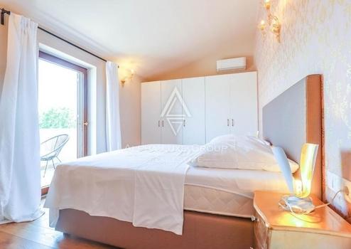 Eine elegante beleuchtete Steintreppe führt in das Obergeschoss, wo sich drei komfortable Schlafzimmer befinden. Eines der Schlafzimmer verfügt über ein eigenes Badezimmer und einen Balkon mit Blick auf den Pool, während die anderen beiden ein modernes Badezimmer teilen. Jedes Schlafzimmer ist mit einem Fernseher ausgestattet. Das Haus ist vollständig mit authentischem istrischen Stein und traditionellem Stil eingerichtet.