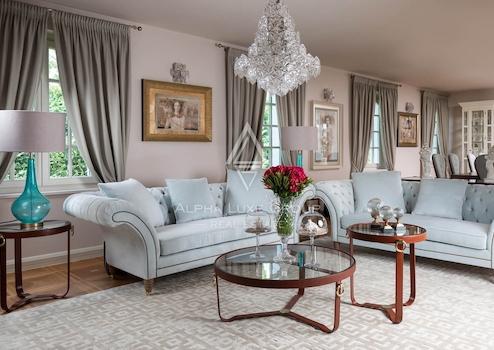 Diese elegante Villa vereint modernes Design mit zeitlosem mediterranem Charme und bietet eine ruhige Umgebung sowie einen luxuriösen Lebensstil. Mit 405 m² Wohnfläche auf einem wunderschön angelegten Grundstück von 959 m² bietet dieses Anwesen eine Oase des Komforts und der Raffinesse. Es umfasst vier geräumige Schlafzimmer, jedes mit eigenem Bad, eine moderne Küche mit hochwertigen Geräten wie Espressomaschine, Backofen und Geschirrspüler sowie ein elegantes Wohnzimmer mit direktem Zugang zum Garten und Poolbereich.