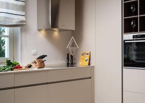 Das Innere der Villa verfügt über einen prächtigen Eingangsbereich, der in ein geräumiges Wohnzimmer mit Essbereich führt, ideal für Familienzusammenkünfte und gesellschaftliche Veranstaltungen. Eine voll ausgestattete Küche und ein elegant gestalteter Essbereich verbinden Funktionalität mit Charme. Die Villa umfasst drei luxuriös gestaltete Schlafzimmer mit eigenem Bad sowie zwei weitere Schlafzimmer mit eigenen Badezimmern im separaten Gästehaus.