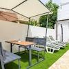 Das Innentreppenhaus wird durch ein großes Dachfenster (180x140 cm) mit Fernbedienung erhellt. Vom Wohnzimmer aus gelangt man direkt auf die Terrasse mit einem Salzwasserpool – ein perfekter Ort zur Entspannung. Die Immobilie ist klimatisiert, mit der Möglichkeit, einen Pelletofen oder einen Holzofen zu installieren. Ein Parkplatz befindet sich direkt vor dem Tor, und alle wichtigen Einrichtungen sind nur wenige Autominuten entfernt.