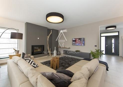 Eine moderne Villa inmitten ruhiger Natur steht zum Verkauf, nur 15 km vom Meer und der lebhaften Stadt Sveti Lovreč entfernt. Diese luxuriöse Immobilie bietet ein großzügiges Layout und erstklassige Annehmlichkeiten, ideal für einen Familienrückzugsort oder eine Investition.
