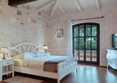 Der Außenbereich verfügt über einen 65 m² großen Pool mit Sonnenliegedeck, einen Essbereich und eine wunderschön angelegte Rasenfläche. Im Obergeschoss befinden sich zwei große Schlafzimmer mit En-suite-Badezimmern, jeweils mit eigener Terrasse und atemberaubendem Blick auf die umliegende Natur und die Adria. Die Villa wird durch zentrale Fußbodenheizung, Ventilatorkonvektoren und einen Kamin im Wohnzimmer beheizt.