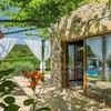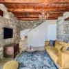 Eine Treppe führt in den ersten Stock, wo sich zwei geschmackvoll eingerichtete Schlafzimmer befinden, jedes mit eigenem Bad. Der rustikale Charme zieht sich vom Inneren der Villa bis hin zum Äußeren und schafft eine perfekte Kombination aus traditionellem Stil und modernem Komfort.
