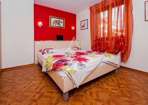 Nur 10 Gehminuten vom berühmten Cuvi-Strand und dem Zlatni rt Waldpark in Rovinj entfernt, bietet dieses Apartmenthaus eine ruhige Umgebung, ideal sowohl für den privaten Gebrauch als auch als Investition. Die Immobilie befindet sich auf einem 877 m² großen Grundstück und umfasst ein 140 m² großes Haus mit drei separaten Apartments im Erdgeschoss und einer geräumigen Zwei-Zimmer-Wohnung mit großem Wohnzimmer im ersten Stock, die auf eine überdachte Terrasse führt. Zusätzlich verfügt das Haus über einen 60 m² großen Keller, der ideal für zusätzlichen Stauraum oder anderweitige Nutzung ist.