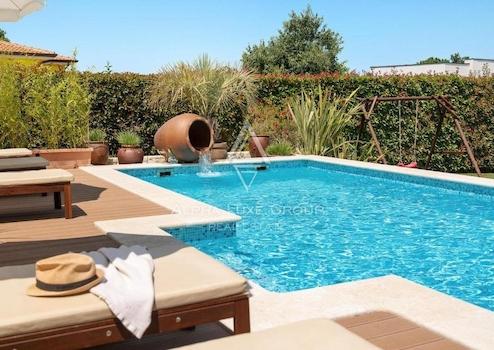 Die Villa wurde mit hochwertigen Materialien erbaut und verfügt über hohe Decken, Holzbalken und authentische Steindetails, die den Charme der traditionellen istrischen Architektur einfangen. Moderne Annehmlichkeiten werden nicht übersehen, mit Fußbodenheizung, Ventilkonvektoren mit Wärmepumpe, Klimaanlage im gesamten Gebäude und Solarmodulen zur Wassererwärmung. Das Wohnzimmer ist für die Installation eines Holz- oder Pelletofens vorbereitet, dank eines vorhandenen versteckten Kamins.