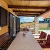 Im Erdgeschoss der Villa befinden sich zwei Schlafzimmer, ein Badezimmer, ein gemütliches Wohnzimmer und ein großer Lagerraum, der bei Bedarf in ein zusätzliches Schlafzimmer umgewandelt werden kann. Im ersten Stock finden Sie eine gut ausgestattete Küche, einen Essbereich und ein weiteres Wohnzimmer mit einem Holzkamin. Diese Etage führt auf eine überdachte Terrasse, die geschlossen werden kann und bietet einen Panoramablick über Motovun und die malerischen Hügel Istriens. Zusätzlich gibt es auf dieser Etage zwei weitere Schlafzimmer, jedes mit einem geräumigen privaten Bad und einem Gäste-WC mit Waschmaschine.