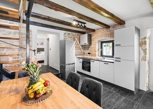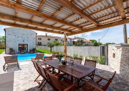Entdecken Sie dieses beeindruckende, neu errichtete Einfamilienhaus in einer ruhigen Gegend nahe Poreč, ideal gelegen 11 km sowohl vom belebten Stadtzentrum als auch von den ruhigen Küsten entfernt. Das Haus erstreckt sich über 133 m² auf zwei durchdacht gestalteten Ebenen, mit einem modernen, offenen Grundriss im Erdgeschoss, der ein Wohnzimmer, eine voll ausgestattete Küche, einen Essbereich, ein Schlafzimmer, ein Badezimmer und einen Technikraum umfasst. Vom Wohnbereich aus haben Sie direkten Zugang zu einem privaten Swimmingpool und einer Sonnenterrasse sowie zu einer überdachten Sommerküche mit Grillplatz – ideal zum Entspannen und Unterhalten.