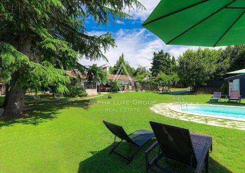 Private Parkplätze für drei Fahrzeuge sind auf dem eingezäunten und landschaftlich gestalteten Grundstück vorhanden, das vollständige Privatsphäre gewährleistet. In der Nähe finden Sie alle notwendigen Annehmlichkeiten für einen komfortablen Lebensstil.