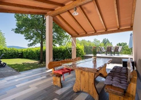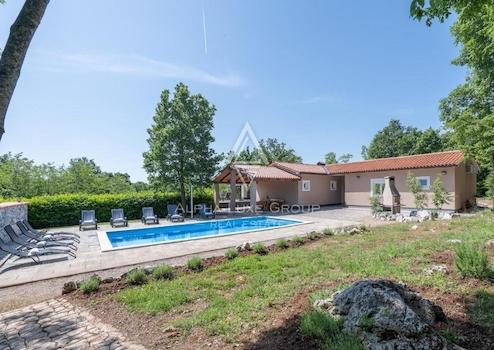 Am Rande von Labin befindet sich ein exklusives Anwesen, perfekt für diejenigen, die Ruhe fernab des städtischen Trubels suchen, jedoch mit leichtem Zugang zu städtischen Annehmlichkeiten. Dieses elegant gestaltete eingeschossige Haus bietet ein nahtloses Wohnerlebnis mit einem offenen Grundriss, der ein Wohnzimmer, einen Essbereich, eine Küche, vier Schlafzimmer, vier Badezimmer und ein Gäste-WC umfasst, alles sorgfältig für Komfort und Stil konzipiert.
