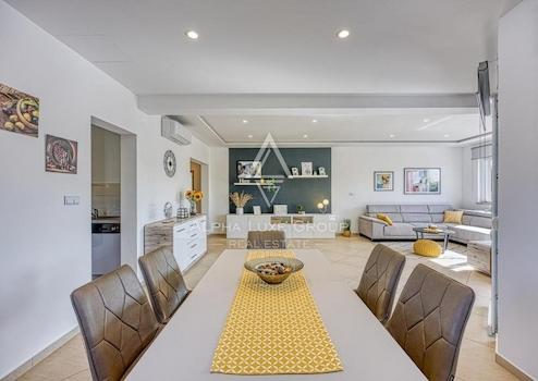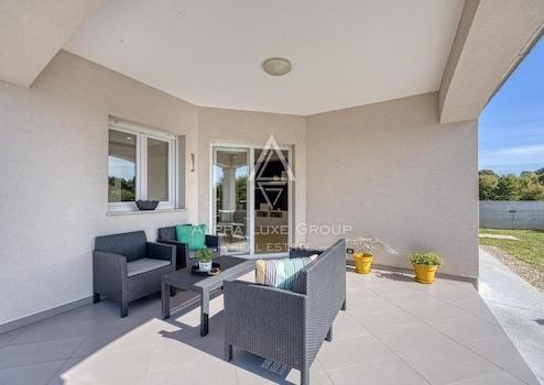 Zum Verkauf steht ein atemberaubendes Einfamilienhaus auf einer Ebene, das auf 151 m² Wohnfläche perfekt für Komfort und Stil konzipiert ist. Das Haus verfügt über einen offenen Wohnbereich mit Wohnzimmer, Essbereich und Küche, der sich auf eine 14 m² große überdachte Terrasse erstreckt, ideal für Mahlzeiten im Freien. Es bietet drei Schlafzimmer, zwei Badezimmer, reichlich Stauraum und einen speziellen Garderobenbereich.