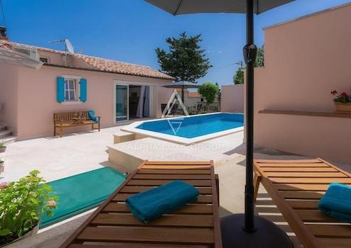 Entdecken Sie ein verstecktes Juwel in einem kleinen Dorf nahe Barban, eingebettet in die malerische Region Istrien, Kroatien. Dieses charmante Ferienhaus bietet Frieden und Abgeschiedenheit, nur eine kurze Fahrt von lokalen Annehmlichkeiten entfernt, und vereint rustikalen Charme mit modernem Komfort. Das Anwesen erstreckt sich über ein kompaktes Grundstück von 170m², das für Intimität und leichte Instandhaltung konzipiert ist.