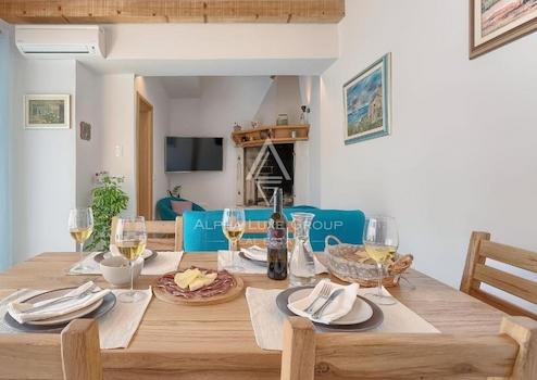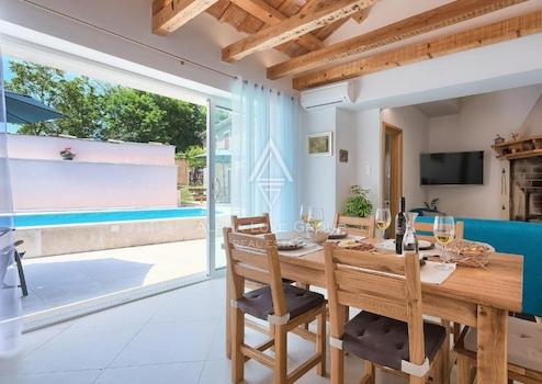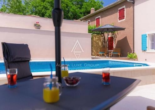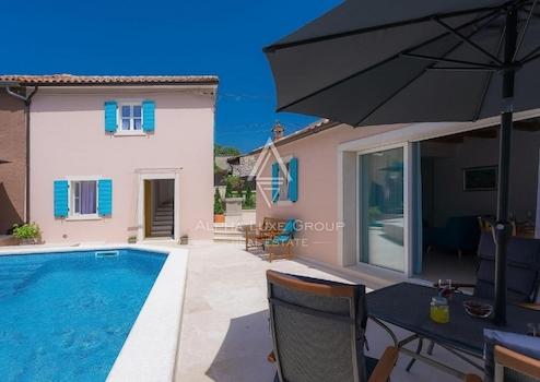 Mit hochwertigen Materialien gebaut, um den authentischen Charakter zu bewahren, fügt sich das Haus nahtlos in seine ländliche Umgebung ein. Die geringe Größe der Gemeinschaft garantiert Ruhe, verstärkt durch seine Lage am Ende einer Sackgasse auf einem sanften Hang mit Blick auf die Raša-Schlucht.