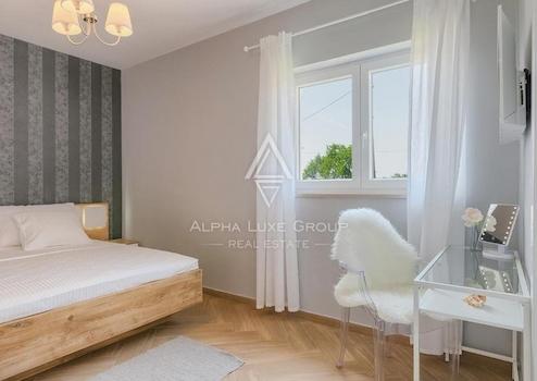 Die Villa erstreckt sich über eine Wohnfläche von 180 m², verteilt auf zwei Etagen, in einer friedlichen Umgebung. Das Erdgeschoss umfasst einen kombinierten Wohn-, Küchen- und Essbereich, ein Schlafzimmer, einen Waschraum und ein Badezimmer. Eine interne Treppe führt in das erste Stockwerk, das drei Schlafzimmer beherbergt – eines davon mit einem eigenen Bad –, ein weiteres Badezimmer und eine Terrasse.