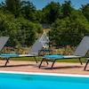 Im ersten Stock befinden sich vier Schlafzimmer, jedes mit eigenem Badezimmer, Fernseher, Klimaanlage und Fenstern mit Moskitonetzen. Jedes Schlafzimmer hat Zugang zur Terrasse, die einen Blick auf die umliegende Landschaft bietet.