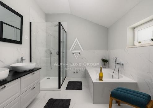 Diese geräumige Residenz befindet sich in einer ruhigen Nachbarschaft, umgeben von Familien- und Ferienhäusern. Sie zeichnet sich durch eine nahtlose Integration attraktiver Außenbereiche mit einem modernen Interieur aus, wobei jedes Zimmer akribisch gestaltet ist. Das Erdgeschoss verfügt über einen offenen Wohnbereich, der eine maßgeschneiderte Küche des deutschen Herstellers Moderano, einen Essbereich und ein Wohnzimmer umfasst, das zu einer überdachten Veranda mit einer Außenküche und zusätzlichem Essbereich führt. Auf dieser Etage befinden sich auch zwei Schlafzimmer, jedes mit eigenem Bad, ein Technikraum/Abstellraum und ein Gäste-WC. Ein separates Studioapartment mit eigenem Eingang und eine interne Eichentreppe, die ins Obergeschoss führt, wo sich ein weiteres Schlafzimmer, ein großes Bad und eine überdachte Terrasse befinden, runden das Layout ab.