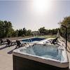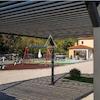 Der Garten erstreckt sich über 1638 m², ist vollständig umzäunt und garantiert Privatsphäre. Er beinhaltet einen 38 m² großen Swimmingpool mit gepflegter Rasenfläche, überdachte Parkplätze, einen Kinderspielplatz und sorgfältig gepflegte Grünanlagen. Ein Nebengebäude von 41 m² beherbergt eine weitere Sommerküche mit Essbereich mit Blick auf den Pool, zusätzlichen Stauraum und eine Toilette.