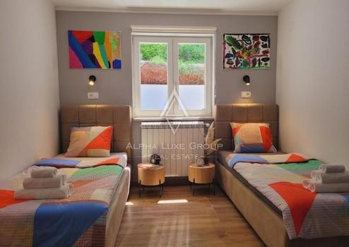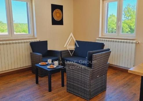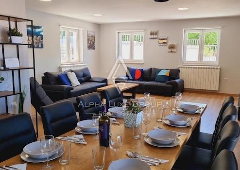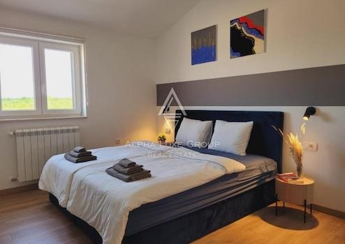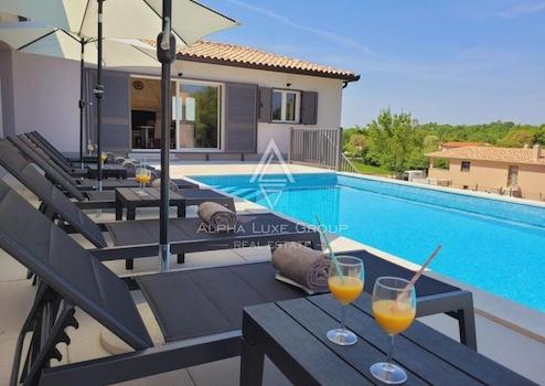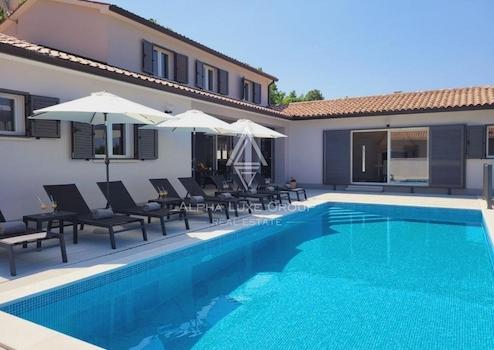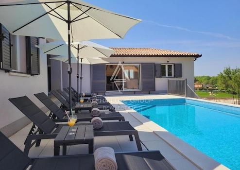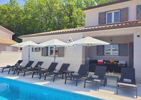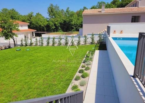 Entdecken Sie diese exquisite Villa mit einem eleganten Design, gelegen in der Nähe der malerischen Stadt Labin. Mit einer Gesamtfläche von 249 m² entfaltet sich dieses prächtige Anwesen über zwei Ebenen, konzipiert, um Luxus und Komfort in jedem Detail zu vereinen.