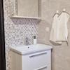 Der Bodenbelag im gesamten Haus ist geschmackvoll in Laminat gehalten, mit Ausnahme der gefliesten Badezimmer, was Langlebigkeit mit Stil verbindet. Das Haus wird über ein Pellet-Zentralheizungssystem beheizt, ergänzt durch Klimaanlagen in den Wohnbereichen für ganzjährige Temperaturkontrolle.
