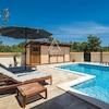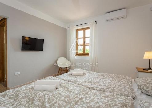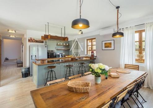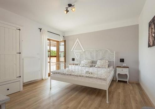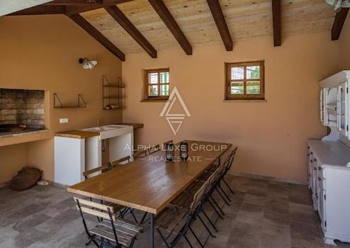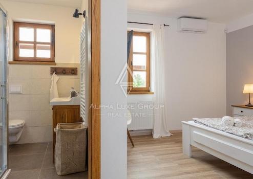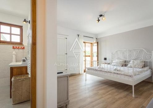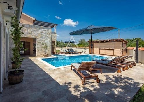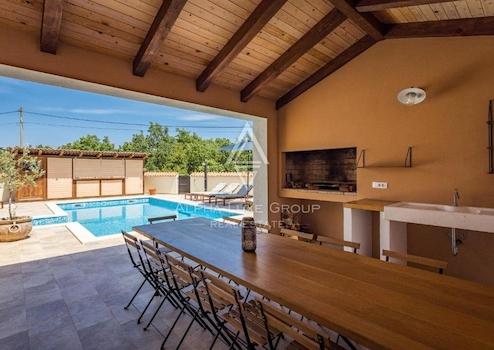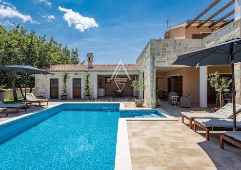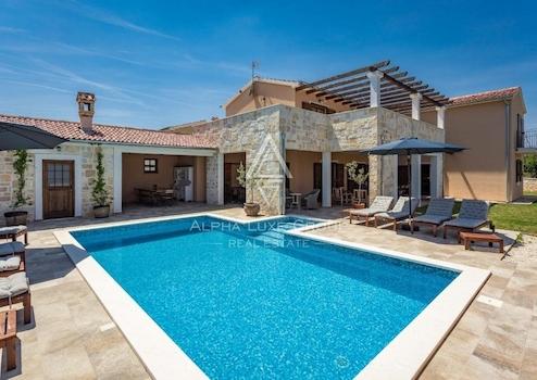 Entdecken Sie eine exquisite rustikale Luxusvilla zum Kauf, gelegen in der idyllischen Umgebung nahe Vodnjan, in der Nähe von Pula. Diese ruhige Immobilie bietet eine Mischung aus modernen Annehmlichkeiten und traditionellem Charme, gelegen in einer friedlichen Umgebung nur eine kurze Distanz von Vodnjan entfernt. Die Villa erstreckt sich über zwei Ebenen und verfügt über eine einladende Eingangshalle, eine voll ausgestattete Küche, die nahtlos in einen geräumigen Ess- und Wohnbereich mit Zugang zu einer überdachten Terrasse im Erdgeschoss übergeht. Zusätzlich befinden sich auf dieser Ebene zwei Schlafzimmer mit einem gemeinsamen Badezimmer. Das erste Obergeschoss beherbergt vier gut ausgestattete Schlafzimmer, jedes mit eigenem Bad, wovon zwei auf eine großzügige Terrasse führen, die atemberaubende Aussichten auf die umliegende Natur bietet. Der Außenbereich ist eine Oase der Entspannung und verfügt über einen 41m2 beheizten Swimmingpool, eine Außenküche, einen Entspannungsbereich, einen akribisch gepflegten Grünbereich mit automatischer Rasenbewässerung, eine externe Toilette und eine automatische Garage für zwei Autos. Die Villa profitiert von einer Zentralheizung mit festen Brennstoffen im Erdgeschoss, einem gemütlichen Kamin, Klimaanlagen für Heiz- und Kühlbedürfnisse und ist vorbereitet für die Installation einer Fußbodenheizung. Sie wird voll möbliert angeboten, ausgestattet mit einem Alarmsystem für Ihre Sicherheit, und bietet einen abgeschiedenen Rückzugsort fernab von Hektik und Trubel, mit Panoramablick auf das Grün.