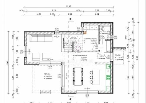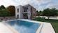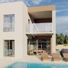 Die Villa empfängt Sie mit einem geräumigen Wohnbereich, der eine elegante Küche und einen Essplatz integriert. Steigen Sie die Steintreppe hinauf, um drei stilvoll eingerichtete Schlafzimmer zu finden, jedes mit eigenem Bad. Zwei dieser Schlafzimmer bieten direkten Zugang zu einer üppigen 28,50 m² großen überdachten Terrasse, vorbereitet für einen Jacuzzi und eine Sauna, was ein exklusives und entspannendes Erlebnis garantiert.