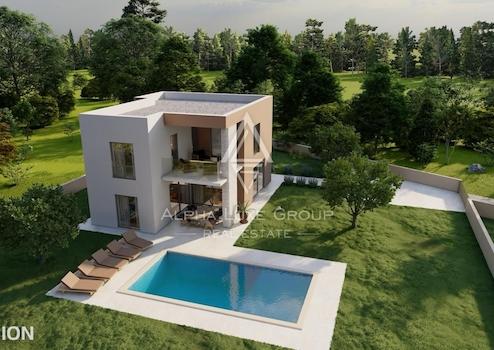 Entdecken Sie ein Meisterwerk moderner Architektur im Nordwesten Istriens, nur zehn Kilometer vom lebhaften Poreč und seinen unberührten Stränden entfernt. Diese luxuriöse Villa erstreckt sich über eine Gesamtfläche von 145 m² auf zwei Etagen, jede davon mit Terrassen, die fesselnde Meerblicke bieten und jeden Moment zu Hause wie einen Rückzugsort erscheinen lassen.