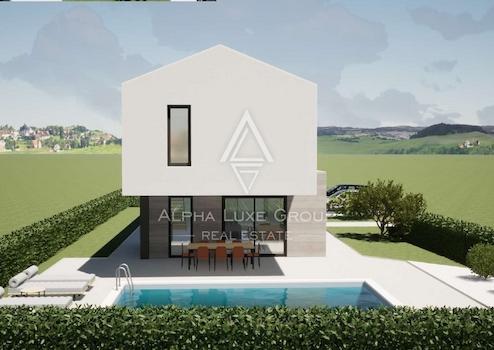 In der ruhigen istrischen Landschaft, nur 15 km entfernt von der lebendigen Stadt Poreč, entsteht eine zeitgenössische Villa, die den Inbegriff modernen Wohnens in einer idyllischen Umgebung bietet. Die Architektur dieser Villa harmoniert perfekt mit ihrer Umgebung und verfügt im Erdgeschoss über einen offenen Grundriss, der den Wohnbereich nahtlos mit der Küche und dem Essbereich verbindet, neben einem Schlafzimmer mit eigenem Bad, einem WC und einem Hauswirtschaftsraum. Das Design umfasst großflächige Glaswände in den Wohn- und Essbereichen, die für reichlich natürliches Licht und ein Gefühl der Offenheit sorgen. Eine elegante Treppe führt in das erste Stockwerk zu drei luxuriösen Schlafzimmern, jedes mit einem eigenen, modernen Badezimmer und Terrassen, die einen Blick auf die grüne Umgebung und den Pool bieten.