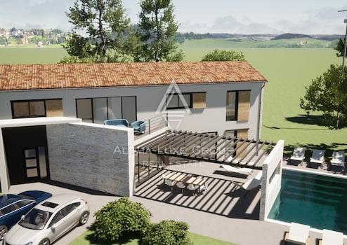 In der idyllischen Umgebung nahe dem Touristenparadies Vrsar und nur einen Steinwurf von dem malerischen Poreč entfernt, entsteht eine elegante neue Villa. Mit einer Gesamtfläche von 230m2 verspricht dieses moderne Domizil eine Kombination aus Luxus und Ruhe.