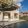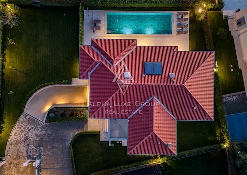 Die Handwerkskunst zeigt sich in jedem Detail, von der hochwertigen Aluminiumtischlerei, Steinverkleidung und erstklassigen Innenveredelungen bis hin zu elektrischen Jalousien, Mückennetzen und sicherheitsverstärkten Merkmalen wie Videoüberwachung, Alarm und Gegensprechanlage. Komfort steht an erster Stelle, mit Fußbodenheizung und -kühlung im gesamten Gebäude, elektronisch gesteuert für konstantes Temperaturmanagement. Solarzellen für die Beheizung des Pools und der sanitären Wasserversorgung unterstreichen die Energieeffizienz der Villa.