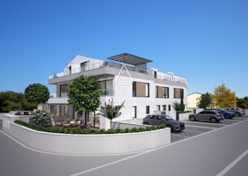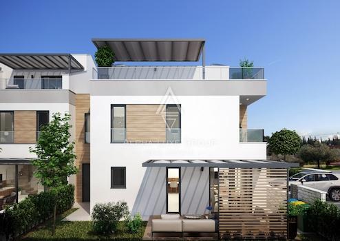 Entdecken Sie ein luxuriöses Reihenhaus im erweiterten Zentrum von Poreč, jetzt zum Verkauf, bequem nur 1.000 Meter vom Herzen der Stadt und 2.000 Meter vom unberührten Meer entfernt gelegen. Diese exquisite Immobilie, die in ihrer Reihe führend ist, erstreckt sich 126 m2 neto und verteilt sich auf drei Ebenen, ergänzt durch einen großzügigen Garten von 200 m2.