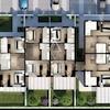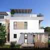 Das Erdgeschoss empfängt Sie mit einer Eingangshalle und Garderobe, die zu einem geräumigen Wohnbereich führt, der eine Küche und einen Essbereich integriert. Diese Etage bietet auch einen Waschraum, eine Gästetoilette und einen Technikraum. Glaswände im Wohnbereich ermöglichen den Zugang zu einer überdachten Terrasse, die eine nahtlose Verbindung zum Außengarten schafft. Das zweite Stockwerk verfügt über zwei große Schlafzimmer, jedes mit einem eigenen Badezimmer, wobei ein Schlafzimmer auch einen persönlichen Kleiderschrank von 6,25 m2 umfasst. Die Reise führt weiter in das dritte Stockwerk, das ein zusätzliches Schlafzimmer mit einem Badezimmer und Zugang zu einer ausgedehnten Terrasse beherbergt. Die Residenz ist mit modernster Fußbodenheizung, betrieben durch eine Wärmepumpe, und Klimaanlagen ausgestattet.